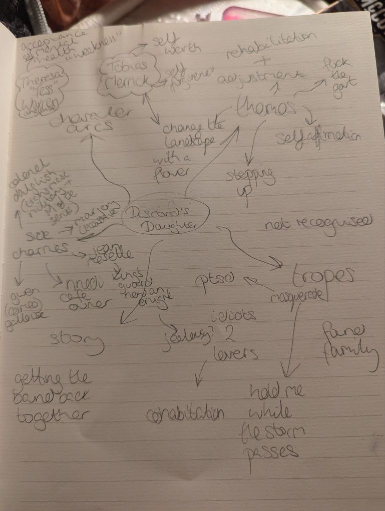 Mindmapping works great for visual learners/processors. If you’re not, try listing under categories! This one is for my wip which +sighs+ look, I’m working on a name. Maybe The Major’s Murderous Mistress because I’m sure everyone wants more violence in their regency! Right? But the working title is Discord.